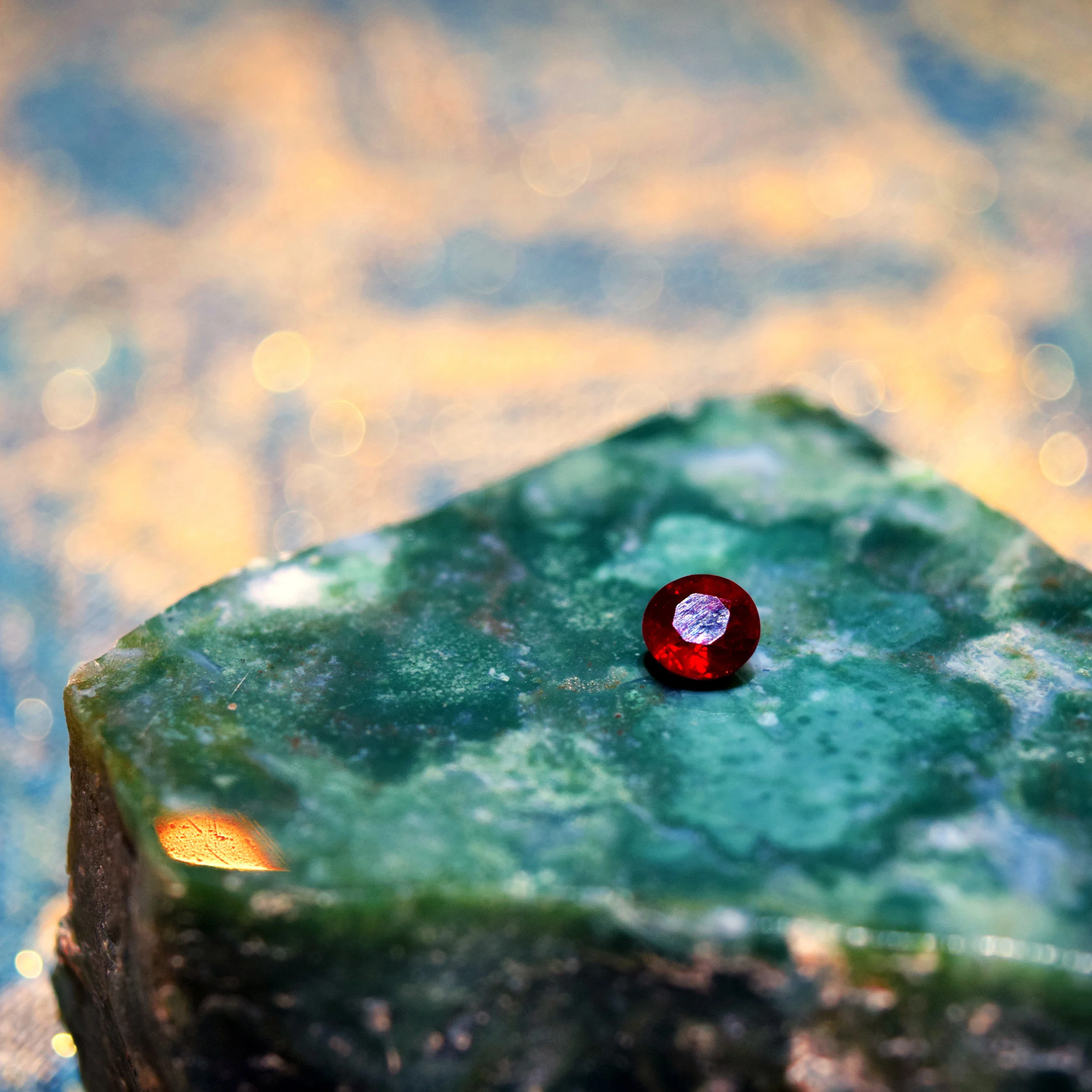 Ruby is corundum with a purple-blueish red to yellow-red colour, and is one of the best gemstones for jewellery setting, second only to the diamond in hardness. Rubies come in a variation of shares depending on the chromium and iron content of the stone, with the finest being a pure red with a hint of blue.